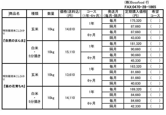 | 玄米 | 10kg | 13,610 | 1年 | 毎月 | 163,320 |